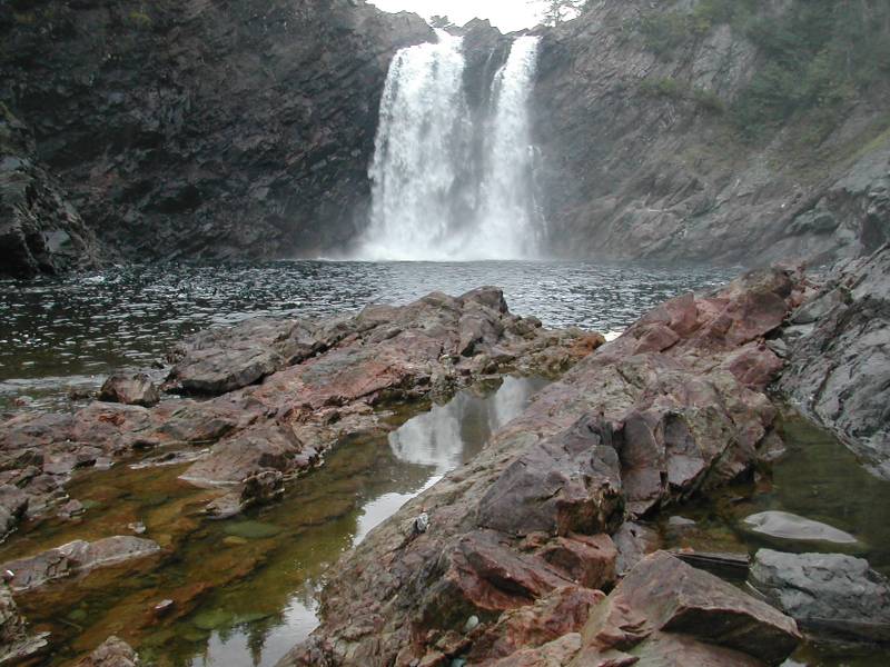 The Sand River Falls, Gargantua Falls and Baldhead River Falls are also in the park. The High Falls of the Magpie River and Silver Falls are to the north close to Wawa. The roadside Chippewa Falls are to the south of the park.