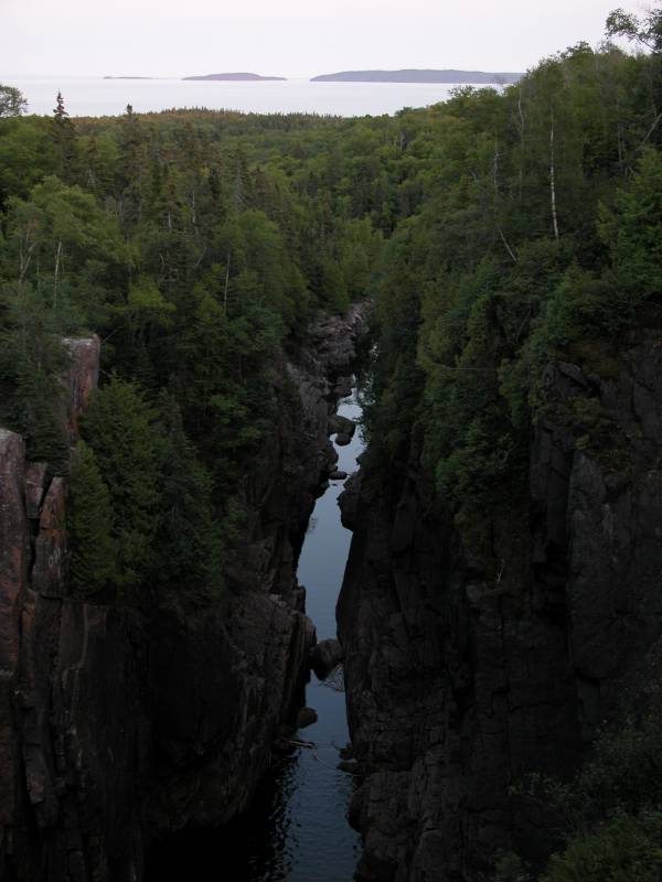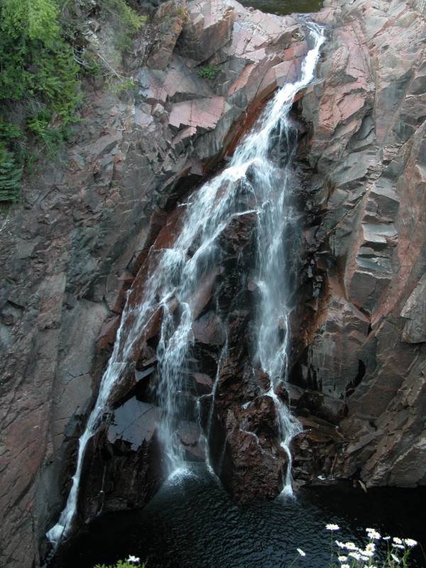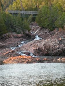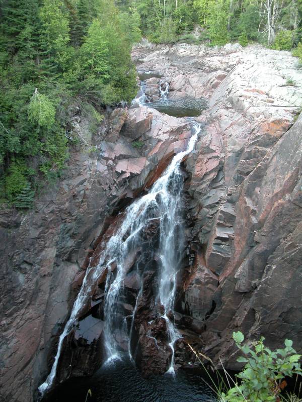 This is another waterfall along the Voyageur Trail. This particular stretch of the trail is known as the Casque Isles Hiking Trail. You could hike this trail to the west to Rainbow Falls, assuming you wanted to take a day or two long hike.