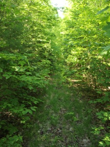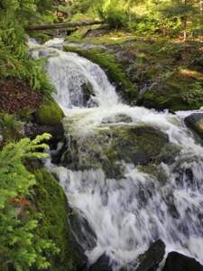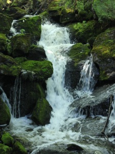 To reach the falls, head north on US 45 from Watersmeet for 3 miles. Turn left on to Sucker Lake Road. This is a wide, unpaved but well maintained forest road. Follow this for 3.6 miles, looking for forest road 5120 on your fight. This road is gated and very overgrown. There is a plastic sign sticking out of the ground identifying it. Park here and hike down the old road. After a half mile, the road just fades away in a swampy patch. From here head north east a few hundred yards to the falls. A hand held GPS is a huge help.
