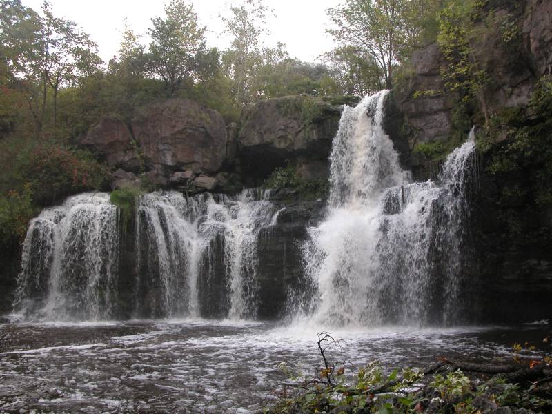 Akron Falls faces west. In the morning the sun is right behind it, making photography difficult. If you worry about such things, you probably should visit this waterfall later in the day.