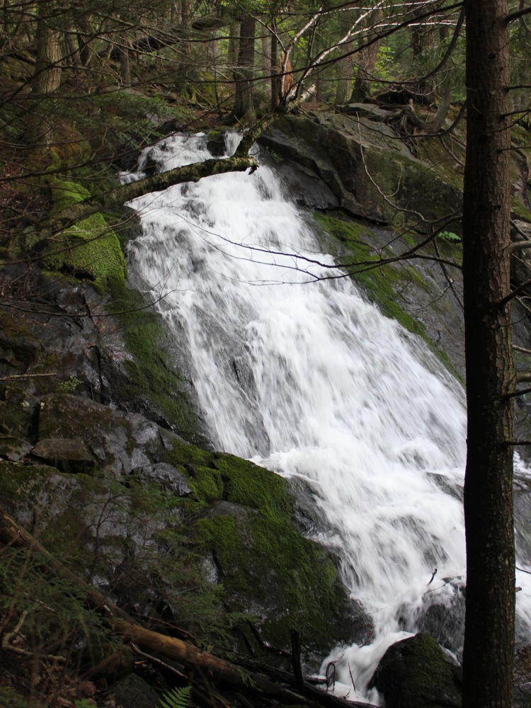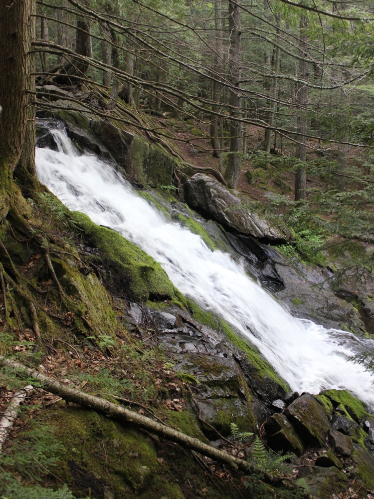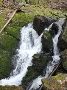 Upstream of the main falls are three more drops each around 5 feet high. The first of these is a short distance above the main falls and easy to reach from the north side of the creek. Upstream of that the creek has carved its way through an enormous rock, creating a narrow gorge. A second, not easily seen, drop is in the gorge. A third drop is beyond that.