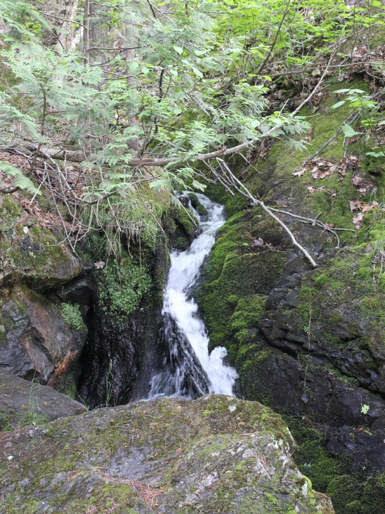 Alder Falls is located about 20 miles north of Marquette on County Road 550. This is Canadian Shield country and the falls is typical of the falls found there. The falls is a slide about 30 feet high cascading down at a 45 degree angle. It falls into a deep, secluded and well shaded gorge. The gorge adds to the sense of wildness and isolation of the falls, even though it is only a mile from the main road.