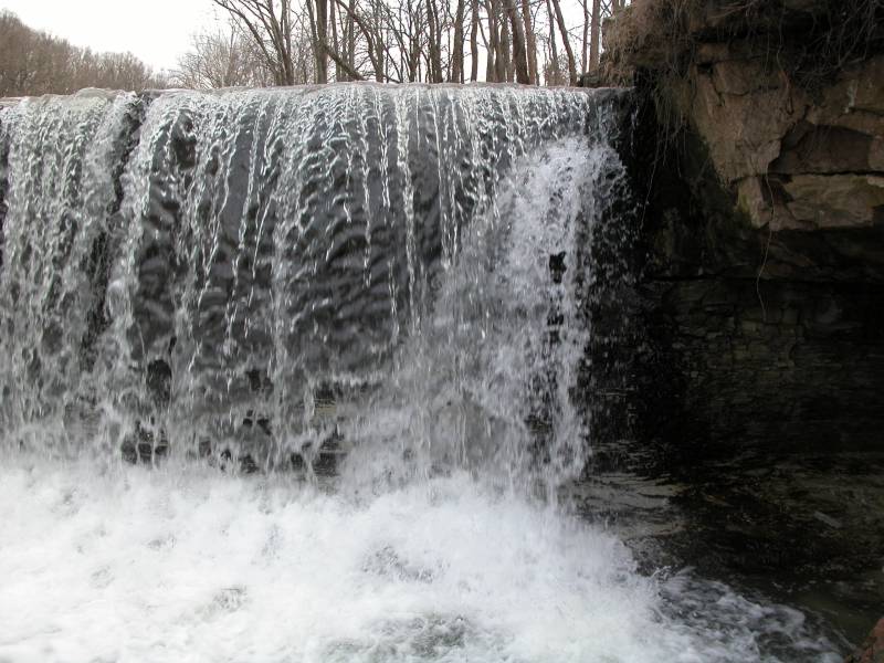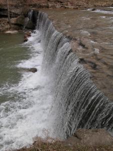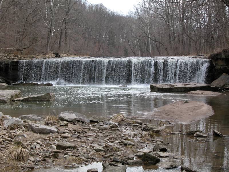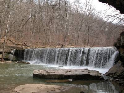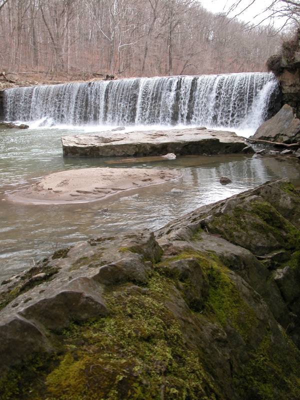 Anderson Falls is a low, wide waterfall located about 50 miles southwest of Indiana, and 15 miles east of Columbus. Here the Fall Fork of Clifty Creek drops over a 10+ foot high ledge. The falls is located in the Anderson Falls Park/State Nature Preserve. There is a parking area, pit toilets and nature trails.