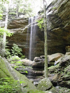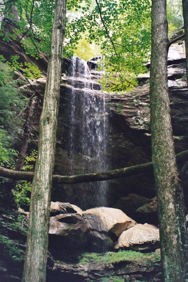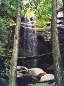 Finding Anglin falls was a bit of an adventure. The "official" directions from I-75 are to take KY 21 east for approximately six miles to U.S. 421 S. Take U.S. 421 S. for approximately 2.8 miles. Continue into Rockcastle County for 0.2 miles and take a right on Hammonds Fork Road. Follow Hammonds Fork Road for approximately four miles and take a left on Anglin Falls Road. The road goes down a small hill. It is paved to the bottom, but is gravel after that. Follow Anglin Falls Road for one mile, then take a left on gravel road to the preserve. There is a small white sign on a mailbox that says "Anglin Falls" in black typed letters marking the entrance to the preserve . The name "Venable" is on the mailbox.