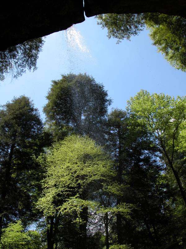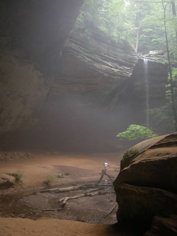 Ash Cave is easy to visit. The main parking area is off of SR 56 and is well signed. It is a five minute walk to the falls. The trail goes behind the falls and up to the brink. You can continue on the Grandma Gatewood trail, a segment of the Buckeye Trail, for 3 miles to reach Cedar Falls.