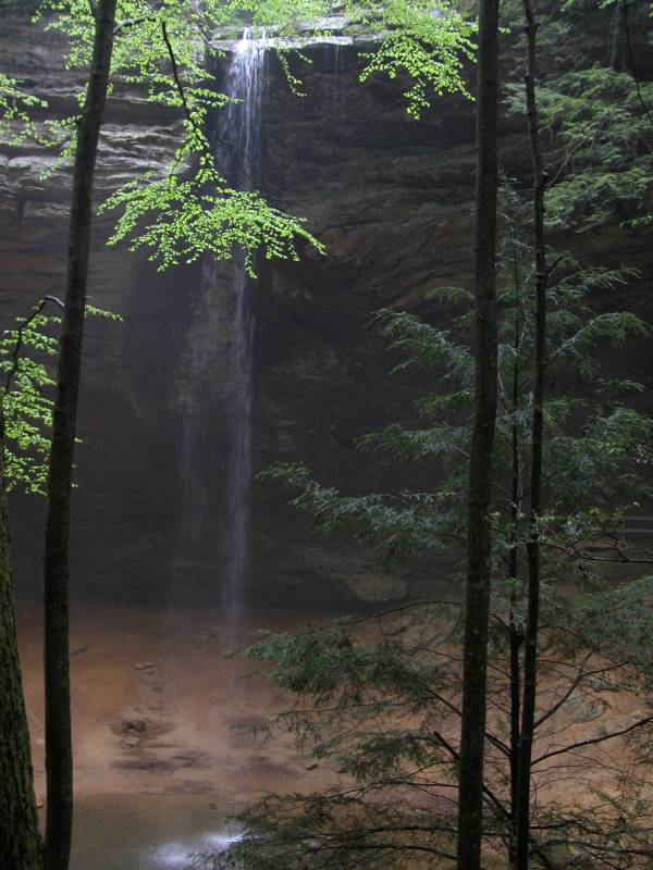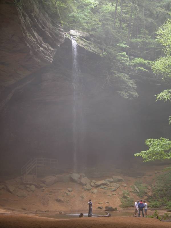 The Hocking Hill area is full of seasonal waterfalls. If you visit in early Spring you will likely find dozens of waterfalls. If you visit in late summer you might find none at all. The closest waterfalls can be found at Cedar Falls and Old Man's Cave.