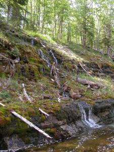 An interesting feature about this falls is a number of small springs emptying into the gorge opposite the falls. I imagine these are due to the dam. Water does not like being dammed, and will work its away around and through the rocks. Some of these springs make the descent into the gorge a little trickier than it would otherwise be.