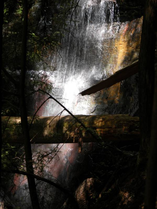 From Berry Creek Falls, the trail climbs up past the falls and then levels off until it reaches Silver Falls. The trail steeply climbs up next to Silver Falls. From the looks of it, during high water, the falls would actually cover part of the trail.