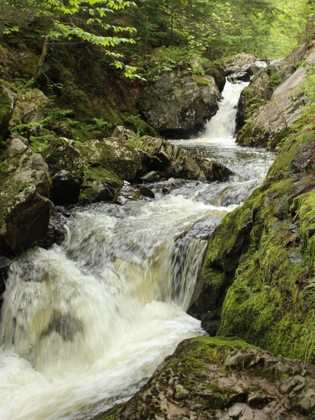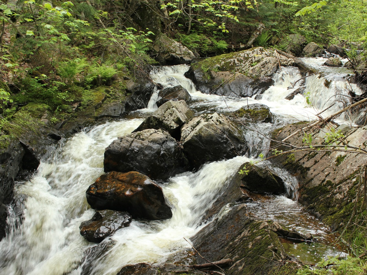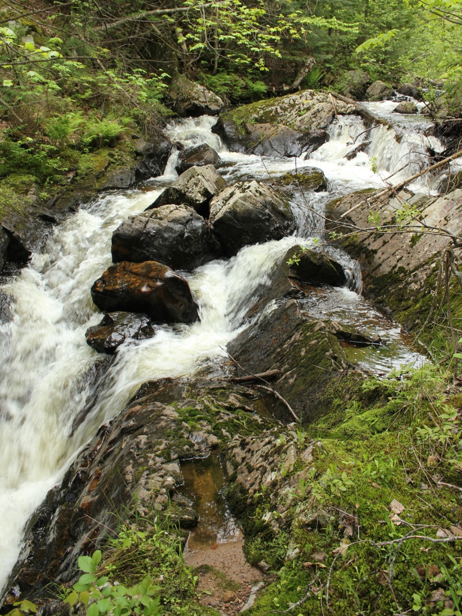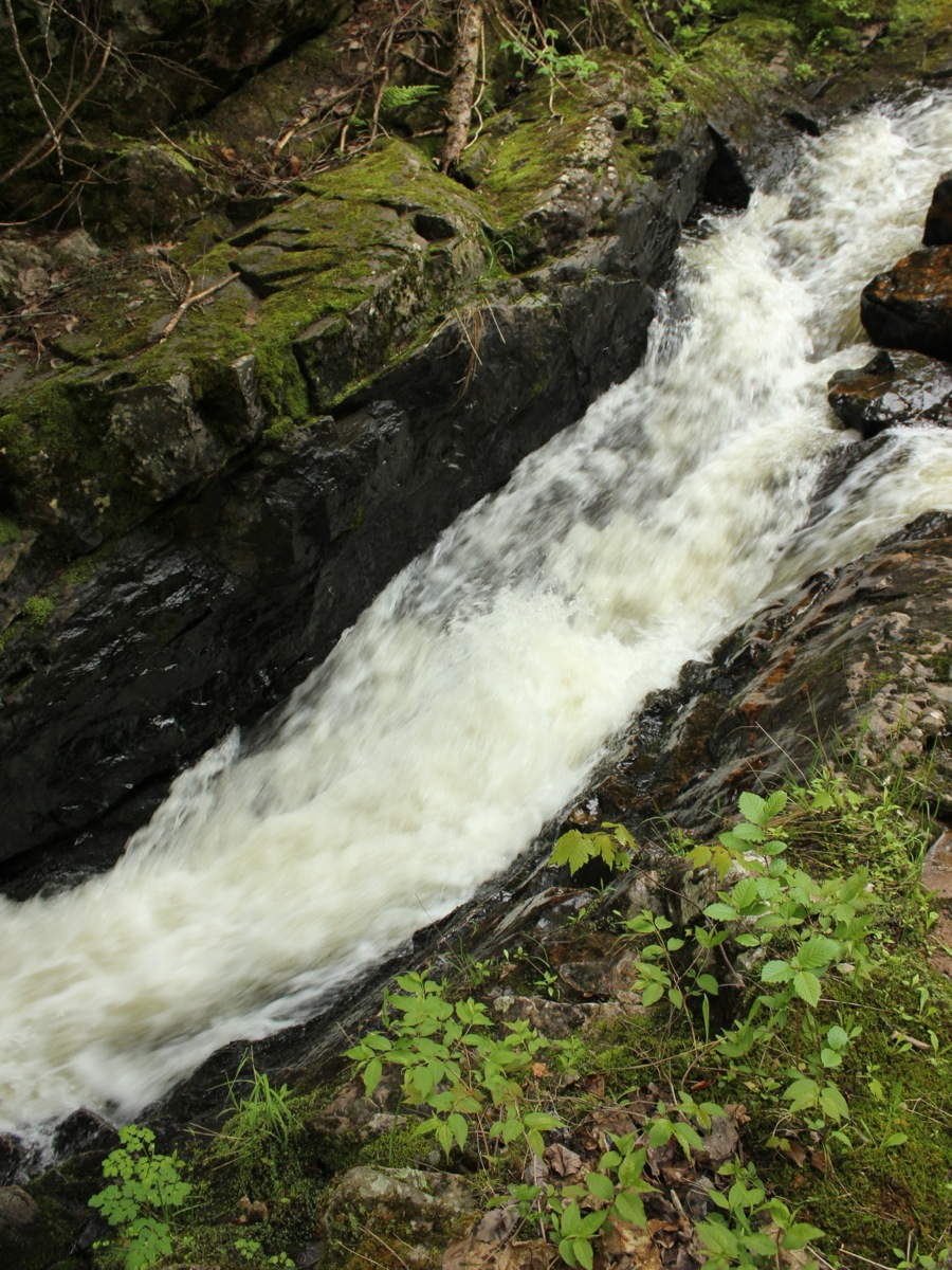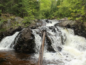 Big Garlic Falls is located about 20 miles north of Marquette. This is a wild waterfall, consisting of number of small drops and chutes. There are two distinct sections to the falls. The river is forced through a narrow rocky gorge. There really is no vantage point from which to see the whole thing, and you have to settle for different views as you carefully hike along the rocks.