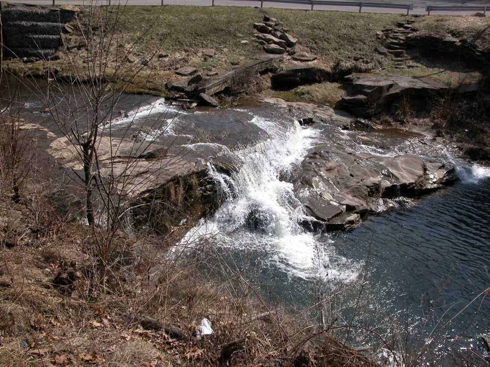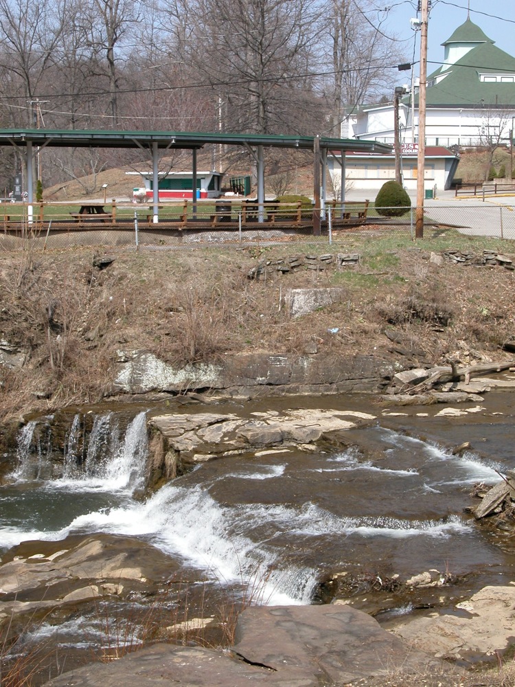 Big Run Falls is located in Cascade Metropark in New Castle. New Castle is about 50 miles north of Pittsburgh. This is another urban waterfall. Cascade Park used to be the site of an amusement park. Above the main plunge is a smaller cascade.