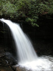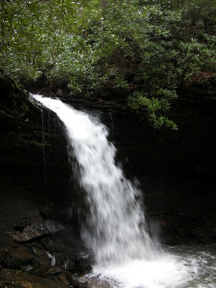 Twin Falls Park is located about 30 miles southwest of Beckley. This is a resort park, with a lodge and golf course. The parking area for the falls is easy to find. Marsh Fork Falls is a few hundred feet from the parking lot. The hike to Black Fork Falls is about 1/2 of a mile. The trail between the falls is fairly level, with a couple of rough spots.
