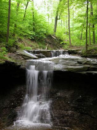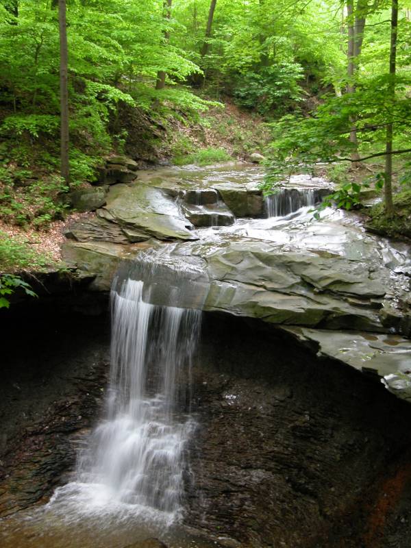Blue Hen Falls is in the Cuyahoga Valley National Park. This is one of the newest national parks, located just south of Cleveland. The area is well inhabited, but the park still contains many interesting natural sites.