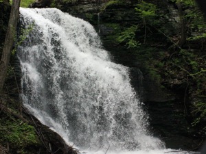 Bushkill Falls is a half mile away, and you would be hard pressed to not have passed it on your way here. Another half mile takes you to the small Pennel Falls. The impressive Dingman Falls and Raymondskill Falls are each less than 20 miles away. New Jersey's Buttermilk Falls is 20 miles away by car, but half that as the crow flies..