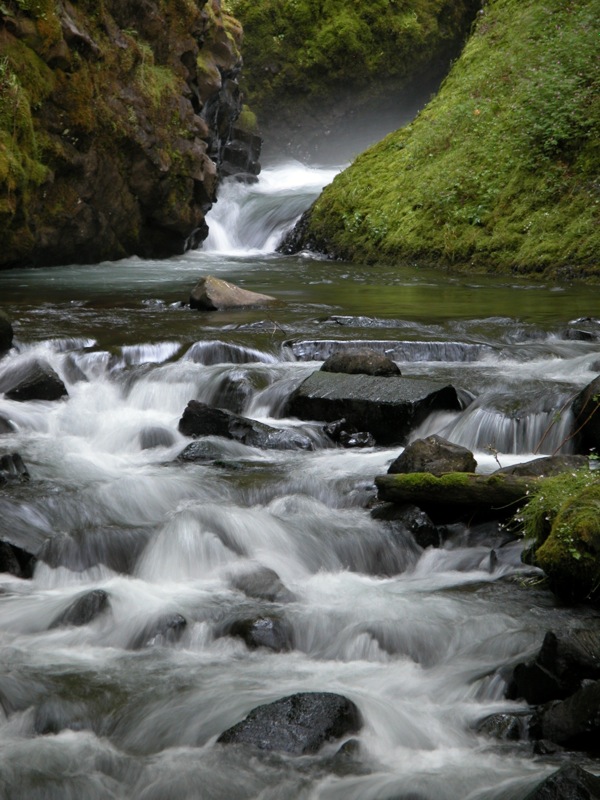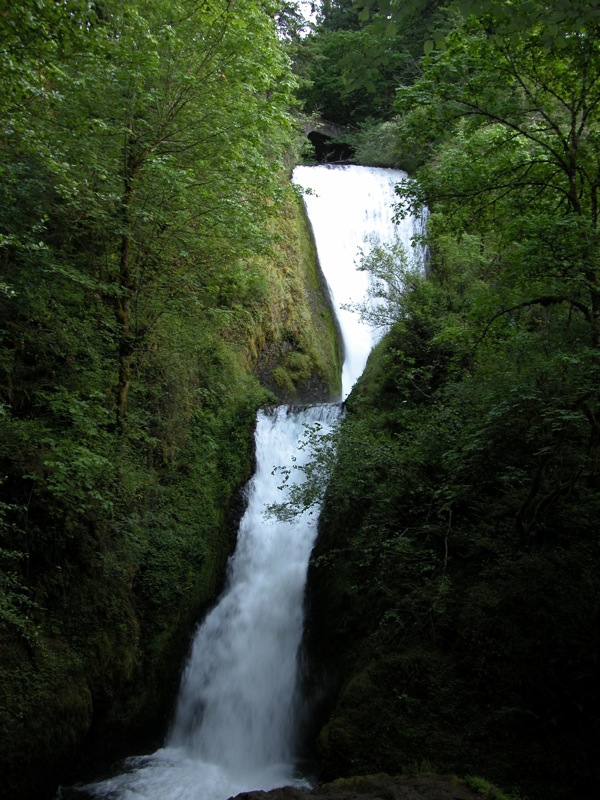 Bridal Veil Falls is another of the many waterfalls along the Columbia Gorge Scenic Highway. This one differs from its neighbors in a couple of ways. First it is below the highway. Unlike Latourell Falls, Wahkeena Falls and Multnomah Falls, which are all visible from the road, the highway crosses above Bridal Veil Falls. The bridge can be seen in the photo above. Secondly, and perhaps related, this is a much wider waterfall with a much larger volume of water.