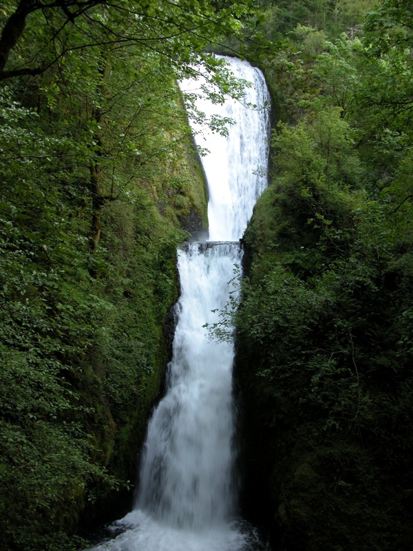 Seeing this waterfall requires a bit more work than some of its neighbors, but it is not hard. Park at the Bridal Veil parking area, which is about 2 miles east of Latourell Falls and 4 miles west of Multnomah Falls. A trail leads down into the gorge, ending at a viewpoint in front of the falls. You can scramble down to the base of the falls to get an even closer look if you wish. The falls is supposed to be visible from I-84 also.