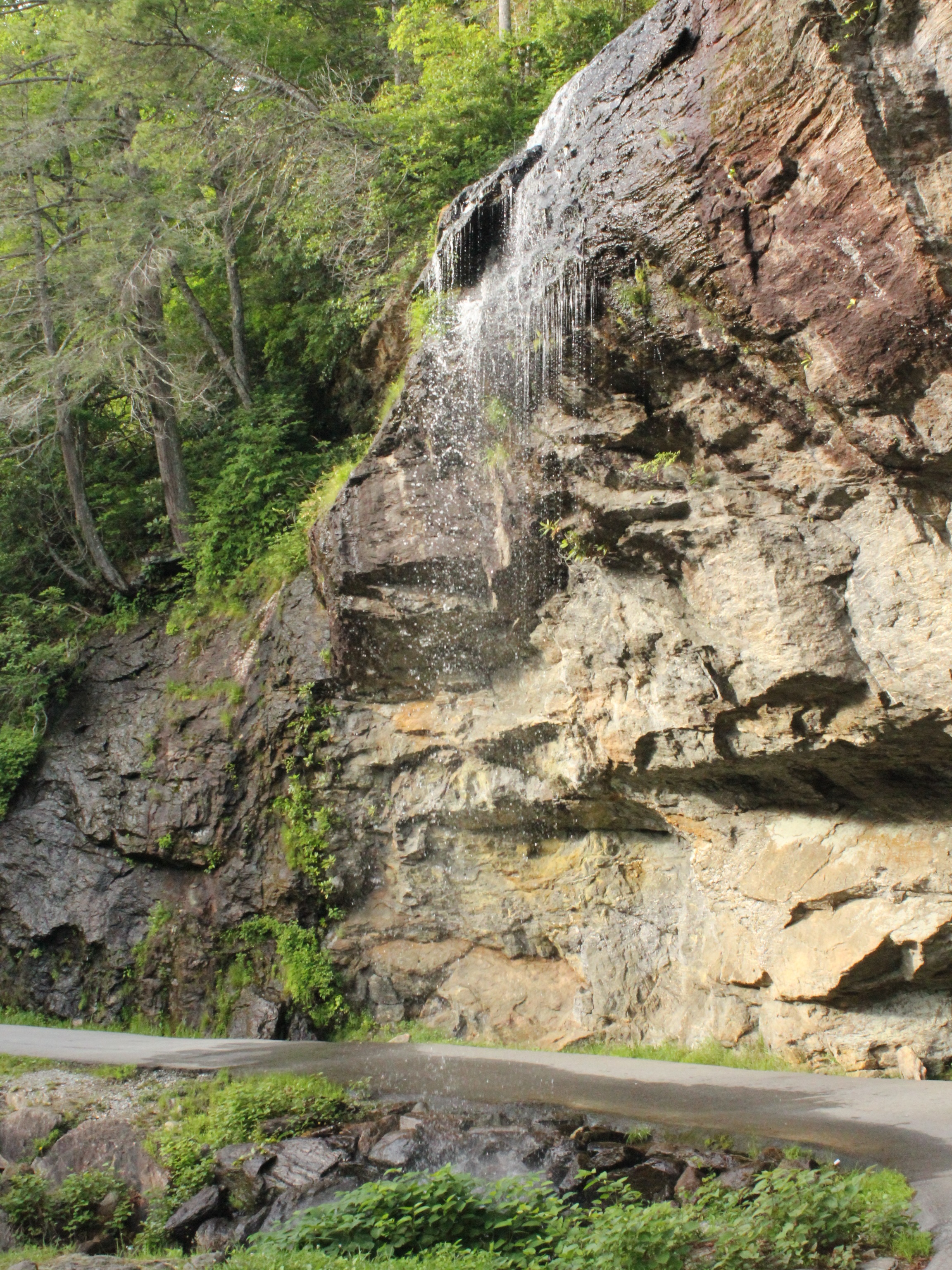 Bridal Veil Falls is a roadside falls along side Highway 64. What makes this waterfall special is that you can actually drive behind it. A little spur road branches off from the highway, goes behind the falls, and then rejoins the highway. There is a small parking area in case you want to get out and see the falls on foot.