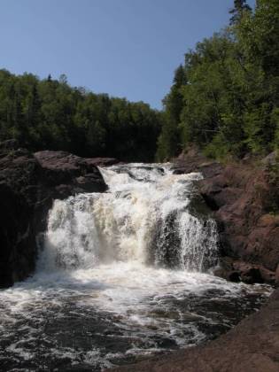 Devil's Kettle Falls is a few hundred yards upstream. The High Falls of the Pigeon River, the High Falls of the Baptism River, Two Step Falls, Cross River Falls, Gooseberry Falls, and the Temperance River Gorge are all along Minnesota's north shore.