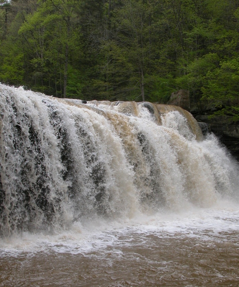 Brush Creek Falls is located in the Brush Creek Nature Preserve, an 124 acre area by the confluence of Brush Creek and the Bluestone River.