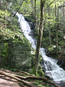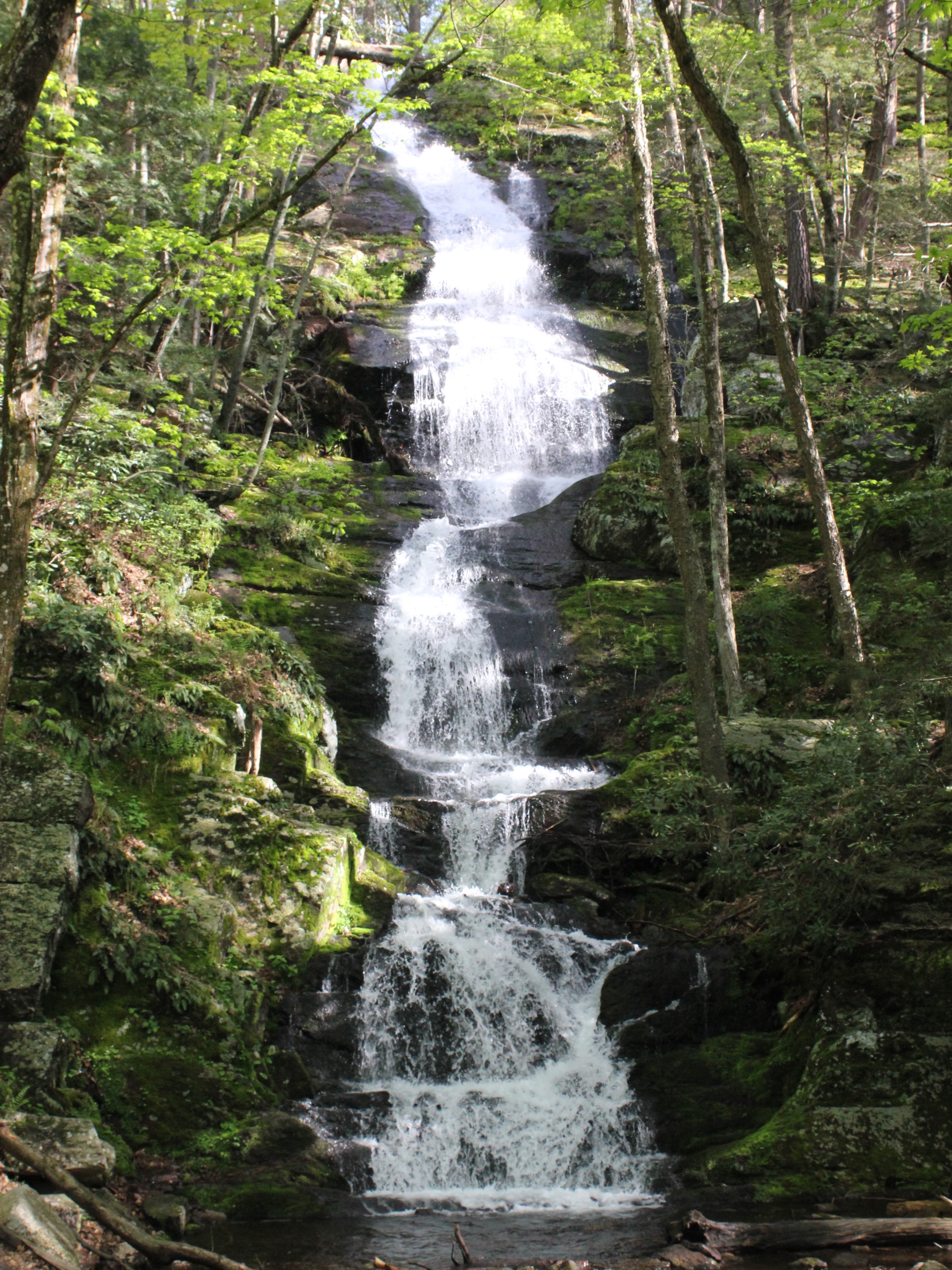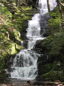 This is a road side falls, but the road can be a bit rough. Mountain Road is unpaved, and has many a good size hole in it. You will have to travel on this road for about 2.5 miles from either direction to reach the falls. To readh the falls from Dingmans Ferry, head east on 739 and cross the Delaware River. You will have to pay a $1.00 toll to cross the bridge, unless you can convince them you are on your way to church or a funeral. After you cross the bridge take the first right and drive 1.9 miles. Continue on this road for a bit over 5 miles. The name changes from Old Mine Road to Walpack Road, but you just need to continue relatively straight. Take a left on to Main Street when you reach the old town site, then turn right on to Brook Road. This is where the road starts to get rough. Continue for about 2.5 miles and the falls will be on your left. There is a parking area on the right.