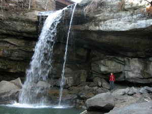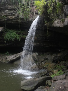 The falls is located along Route 18, just south of I-76. If you take exit 13 on I-76, and head south on Route 18, you will see the sign for the natural area on your right just after you cross under I-76. It is hard to miss. From the parking area, it is a short walk to the falls. There is a stairway on the trail.