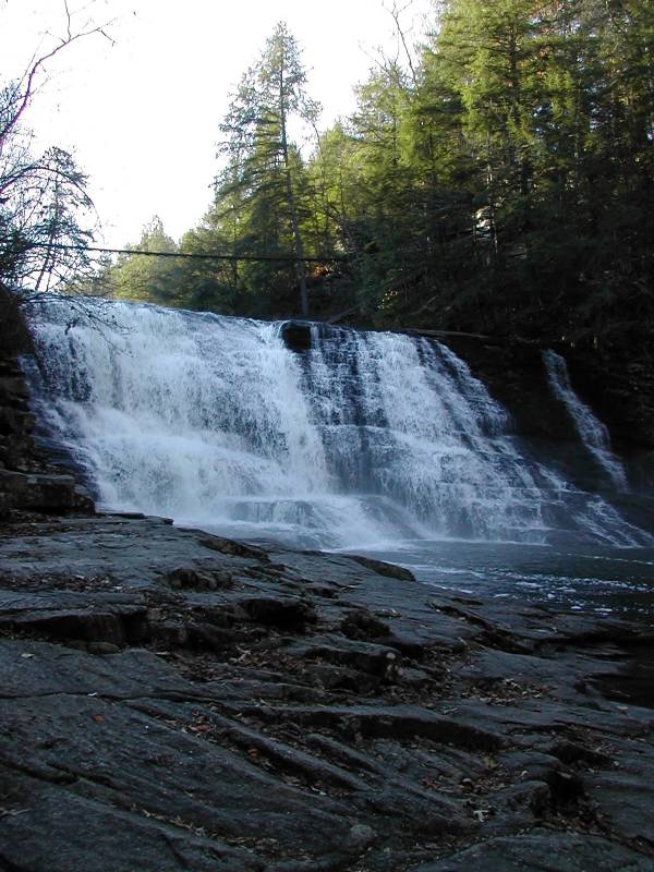 A suspension bridge crosses Cane Creek just above the falls. This connects to the trails that lead to Fall Creek Falls and the overlook to Cane Creek Falls. You can also peek around the corner to see the upper edge of Cane Creek Falls.