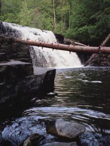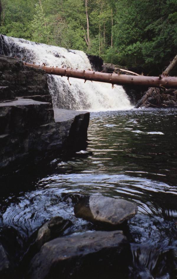 Canyon Falls is along US-41 near Alberta, about 15 miles south of L'Anse. The trailhead is located in a recently renovated roadside park. The trail to the falls is about 1 mile over level terrain.