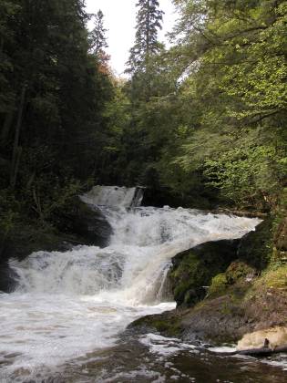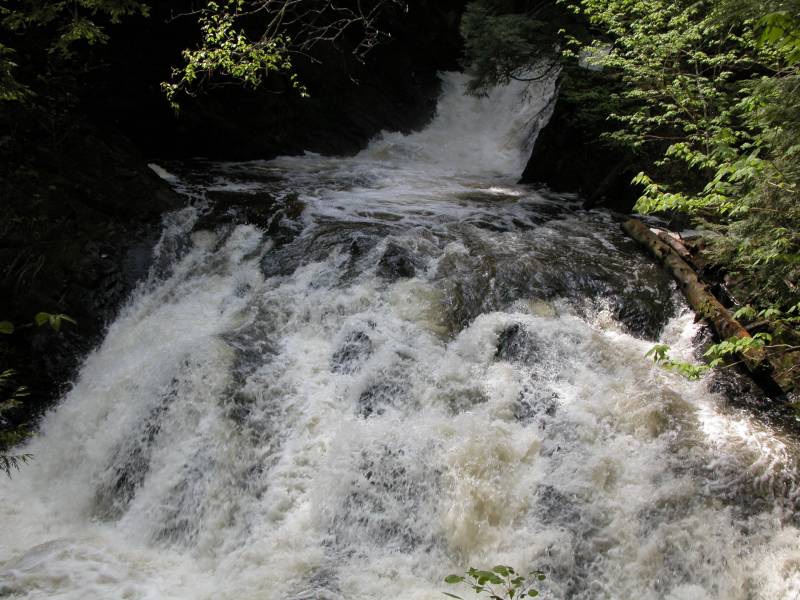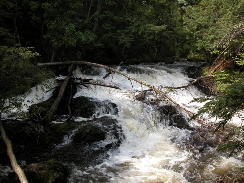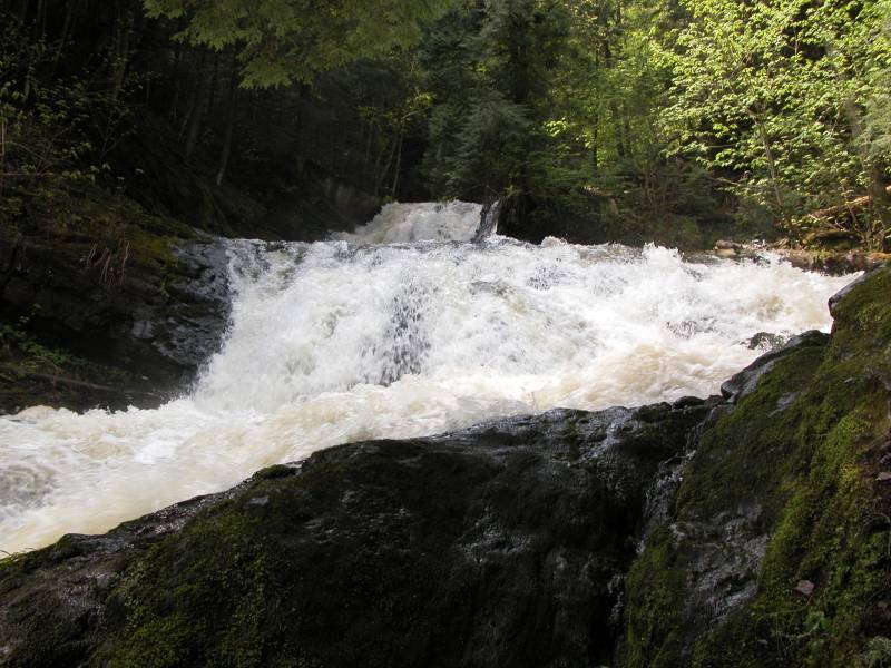 The smaller, but much easier to visit Morgan Falls are a bit over a half mile downstream where Morgan Creek joins the Carp River. Warner Falls and Black River Falls are both within a half hour drive.