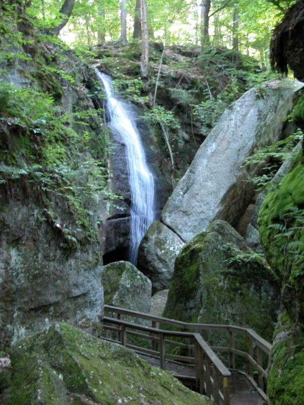 The park can be reached from Route 282. There is a parking and picnic area on one side of the road, and on the other side are the ledges. There are several trails through the ledges, many which go through narrow crevices in the rocks. Cascade Falls can be found by heading to the right. The 10' Minnehaha Falls is on the far end of the park.