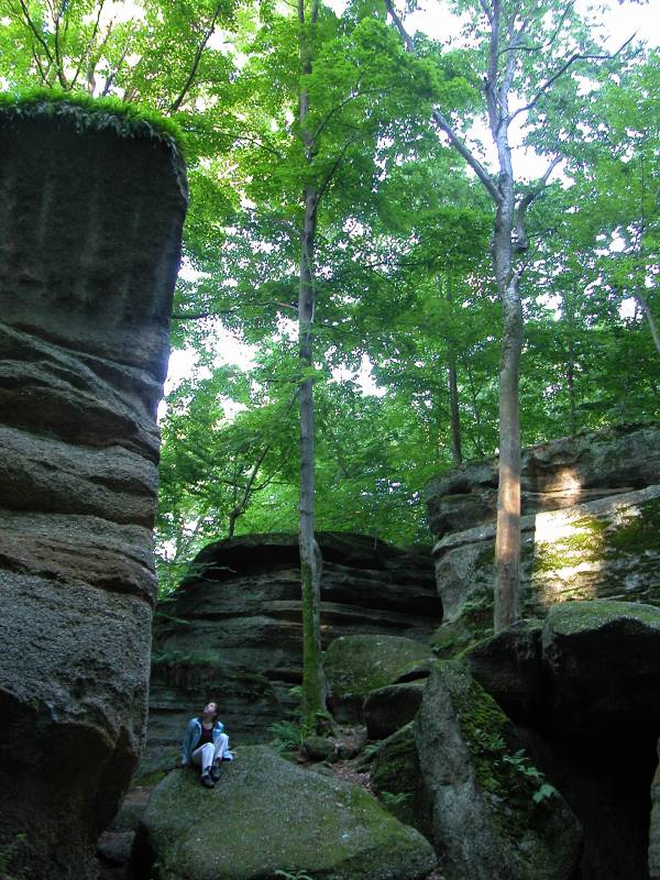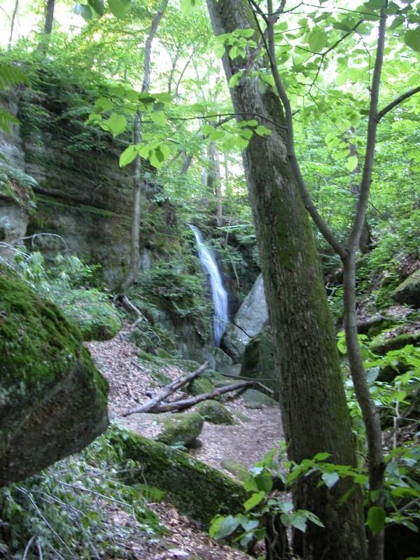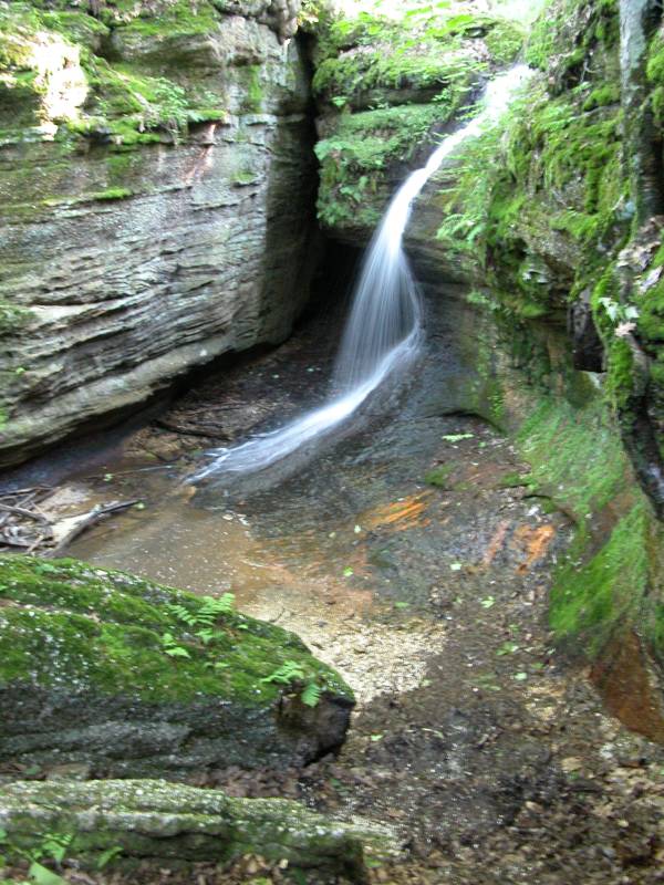 Cascade Falls is in Nelson & Kennedy Ledges State Park. This is a delicate waterfall, but it is quite pretty, and the ledges themselves are very interesting. This is a small park, and you can walk all the trails in a couple of hours. The sandstone formations are quite interesting, especially for those of us from the flat lands.