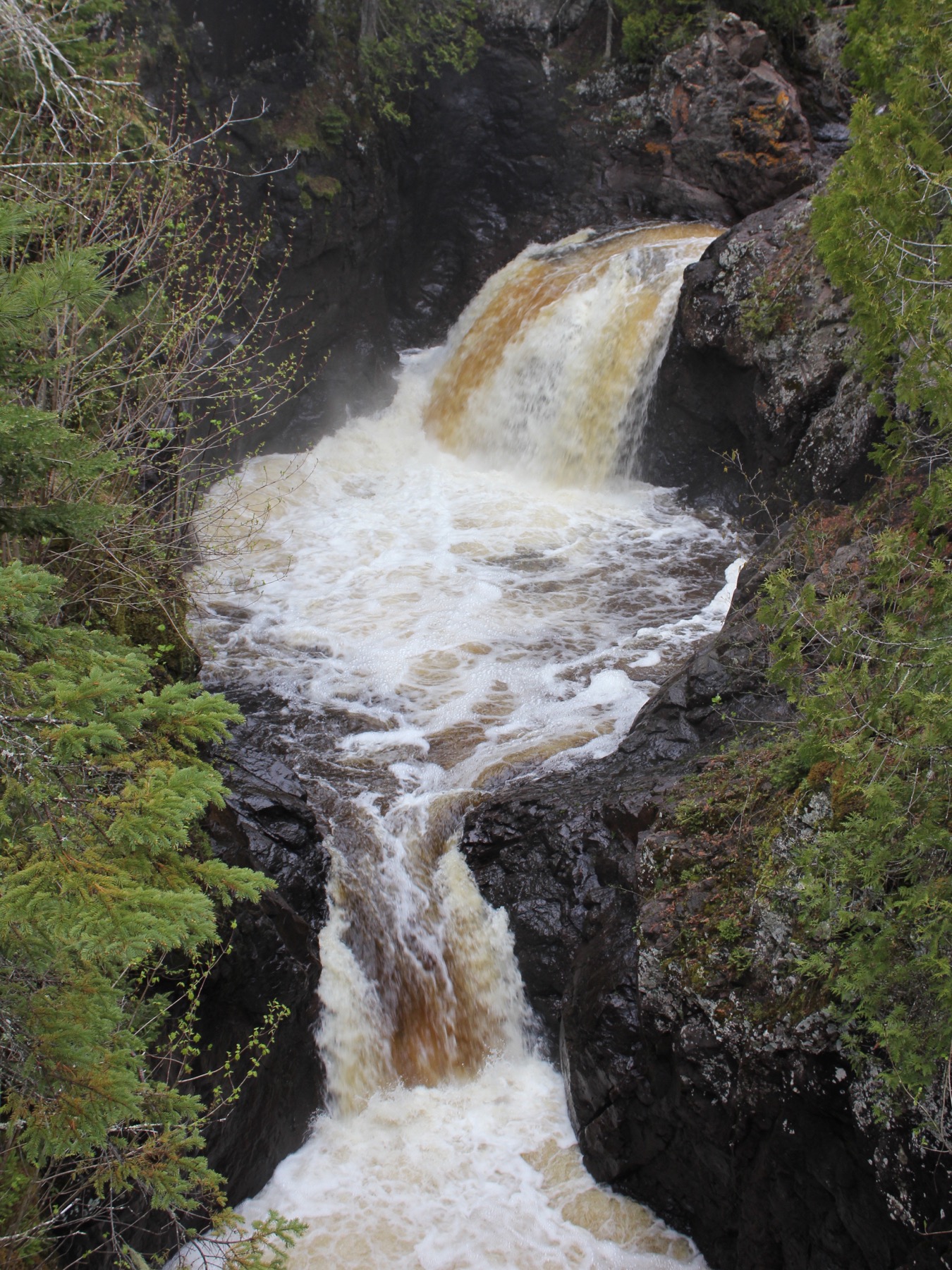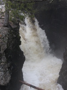 The Cascade River is aptly named. There are a large number of drops of varying sizes on its 17 mile course. It drops 900 feet in its final 3 miles, and there are 4 significant drops in the final quarter mile, all located in Cascade River State Park. In addition to the waterfalls, the narrow, twisted rocky gorge carved out by the river is fascinating.