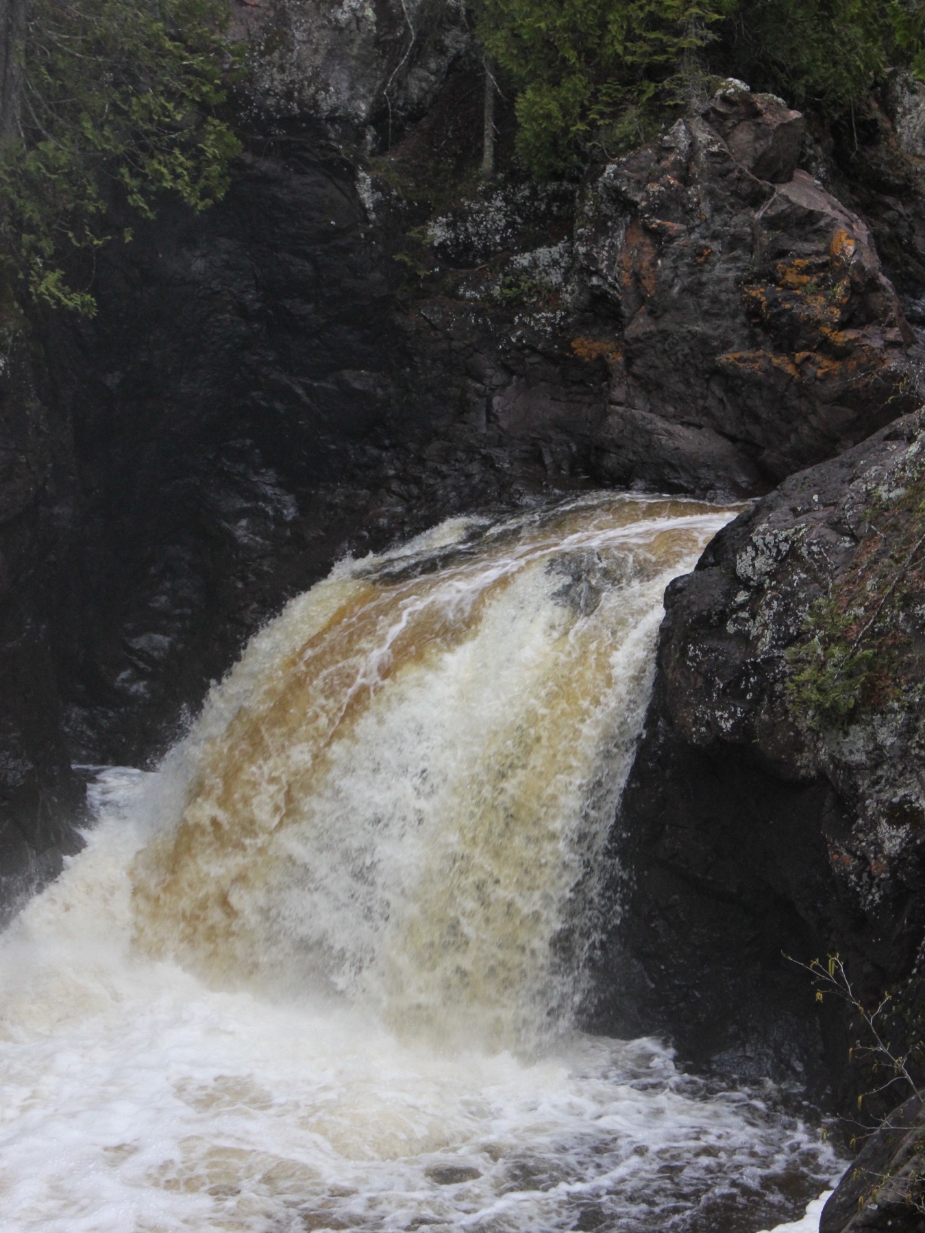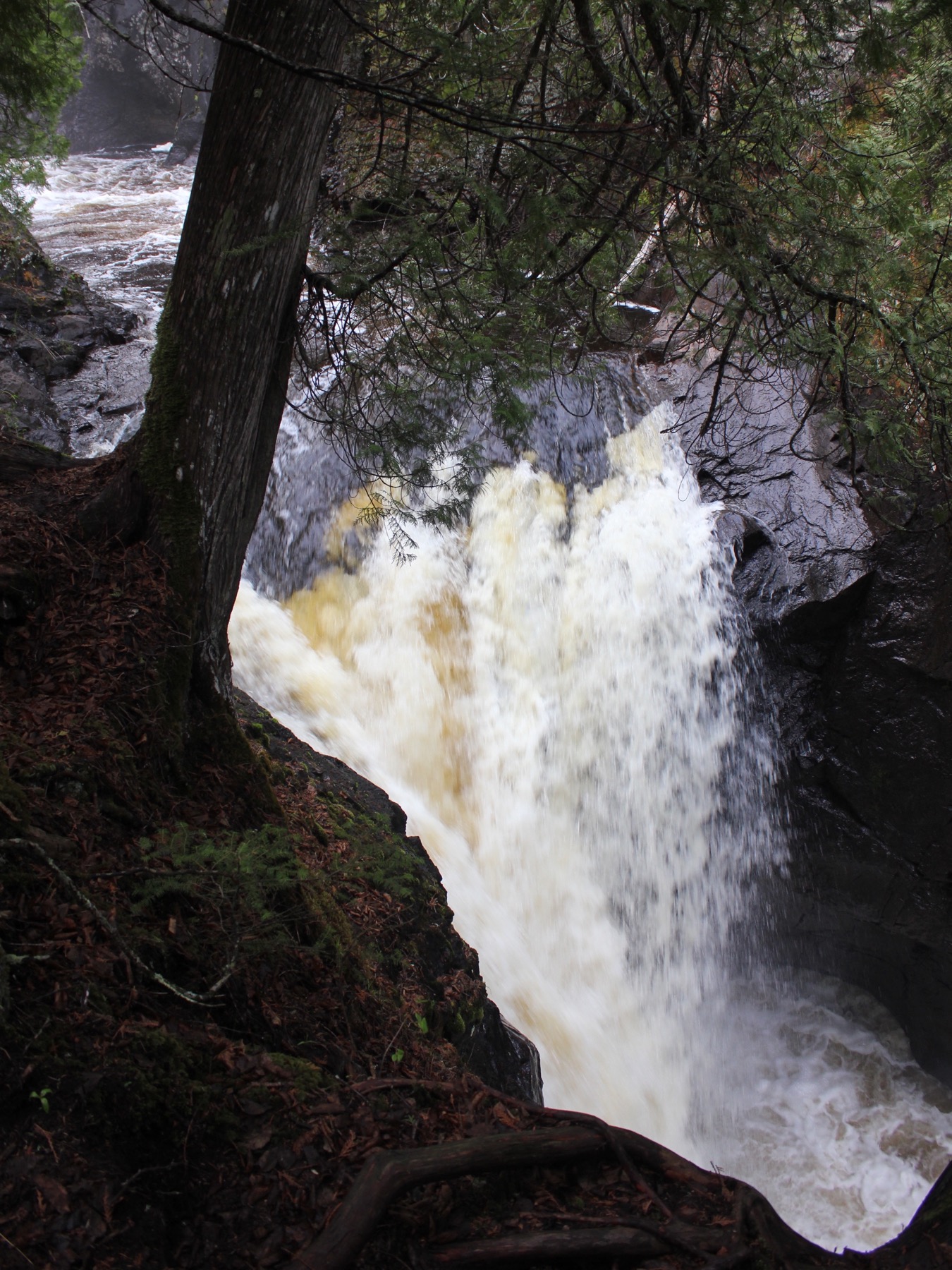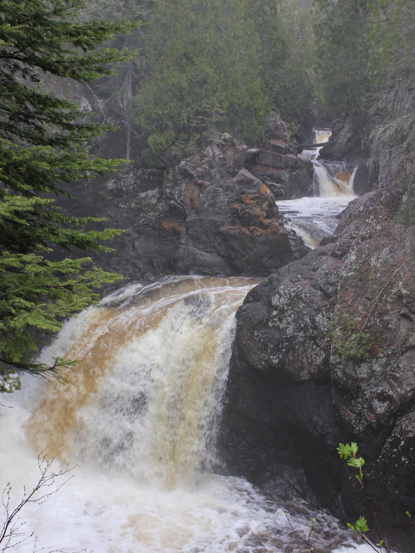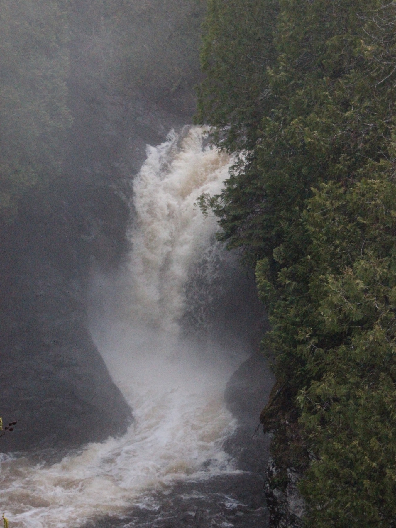 I visited the falls late on a rainy day. A mist was rolling in from the lake which made things very atmospheric, but was not the greatest for good photos of the lowest falls.