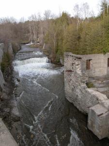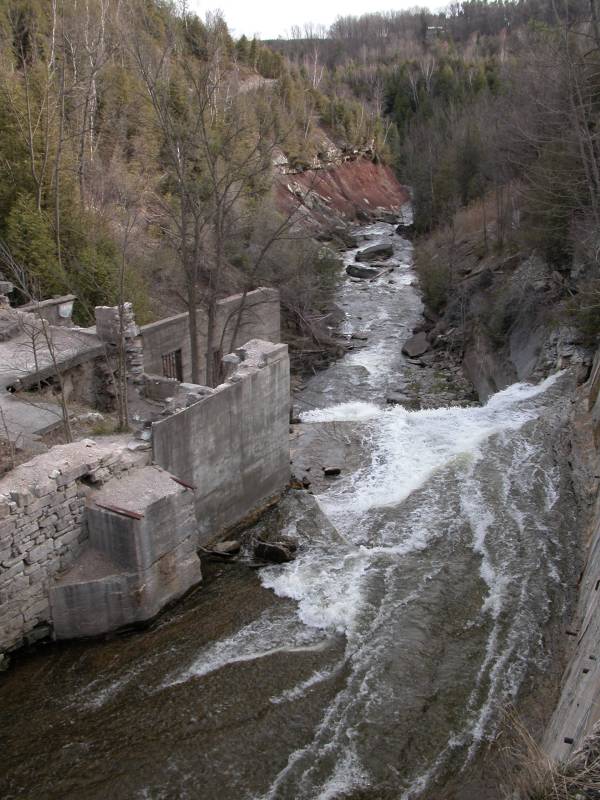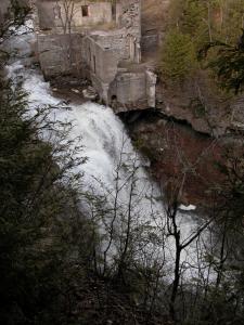 This used to be an industrial waterfall and is surrounded by ruins. Above and below the falls the gorge walls have been reinforced with concrete. Personally I find ruins interesting, but for many they will detract from the beauty of the falls.