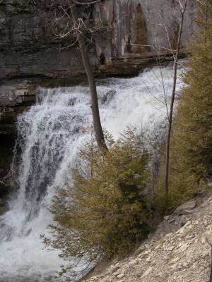 Eugenia Falls and its neighbors are 70 km to the north west. Hilton Falls is 50km to the south east. Webster Falls and the many Hamilton area waterfalls are another 50km beyond that.