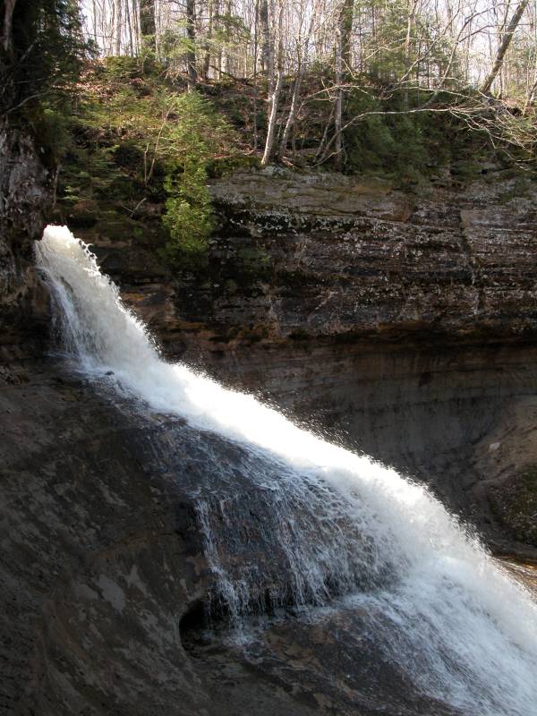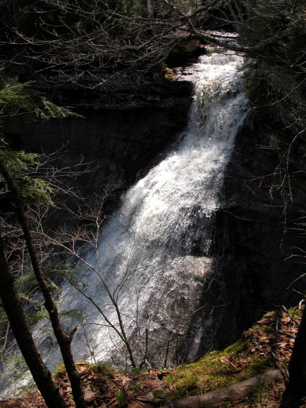 With some effort you can get into the gorge and work your way up to the base of the falls. You can continue on the trail for another 2 miles to reach Chapel Rock, which is very impressive, and Chapel Beach, but watch out for flies!!