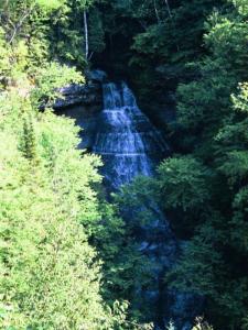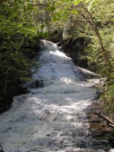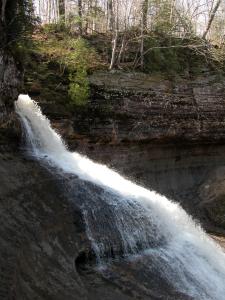 The walk to the falls is about two miles through woods. You walk along side the gorge for much of the trip, and there are some steep drop offs. In the spring there are lots of wildflowers.