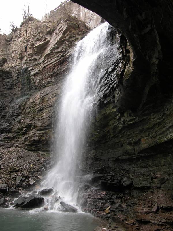 For a different reason to visit Chedoke Falls, see the Vanishing Point, a site dedicated to the exploration of drains in Ontario. You may want to read their description before walking up Chedoke Creek to see the falls. Chedoke Creek has been turned into a storm drain above the falls, but illegal untreated sanitary drains empty into the storm drain resulting in some very unsanitary water, especially if there has not been any rain for awhile.
