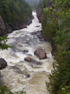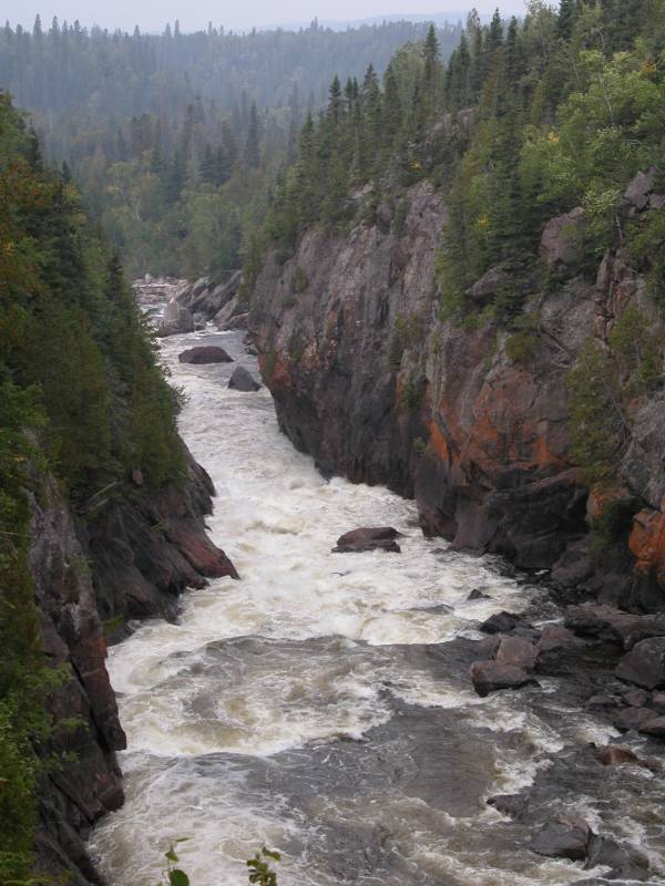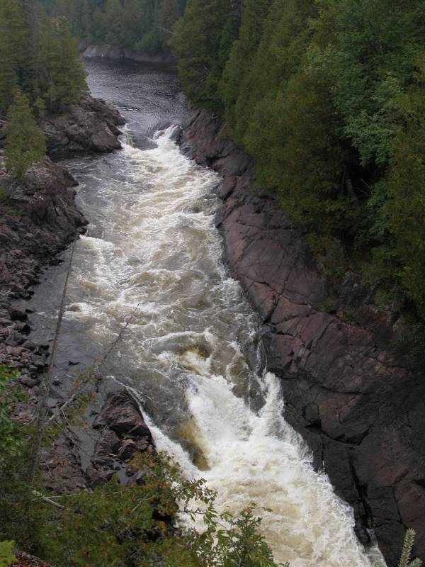 The White River has a large number of rapids and smaller falls. The big one is Umbata Falls which is many miles upstream. Hook Falls is about an hour upstream along the coastal trail. Along the remote coastline of Pukaskwa you will find Cascade Falls, Schist Falls and Swallow River Falls. None of these falls are easy to reach. The much easier to visit Mink Creek Falls is just off of Highway 17 11 miles west of Marathon. There are also falls on the Black River south of Highway 17.