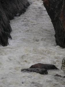 I do not know what the total drop of the cascade is, and it is hard to estimate given that the cascade is around 700 meters long. What makes the place really interesting is the suspension bridge over the gorge. The bridge is 30 meters long and 23 meters above the raging water below. It was quite windy the day I was there making it all the more interesting, if not downright scary. The bridge definitely sways in the wind. From the bridge you can get some lovely views of the falls.