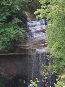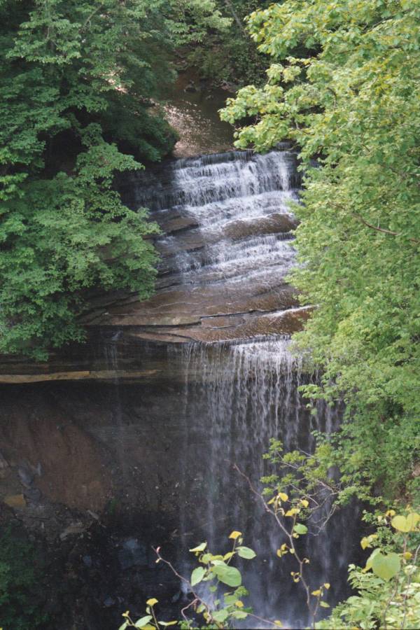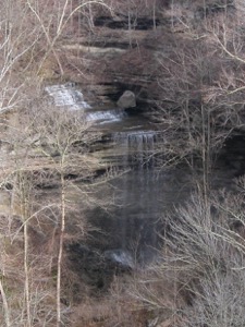 From the rim trails, it is difficult to get a really good view of any of the waterfalls in this park. The overlook at Clifty Falls provides a mostly unobstructed, but limited view of the falls. There is also an overlook on the road that gives you a distant view of the falls.