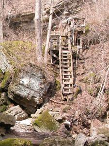 The gorge trail ends at a wooden platform opposite the falls. You have to climb a ladder to reach the top of the platform. The platform is not entirely stable looking, but it held a troop of boy scouts while I was visiting.