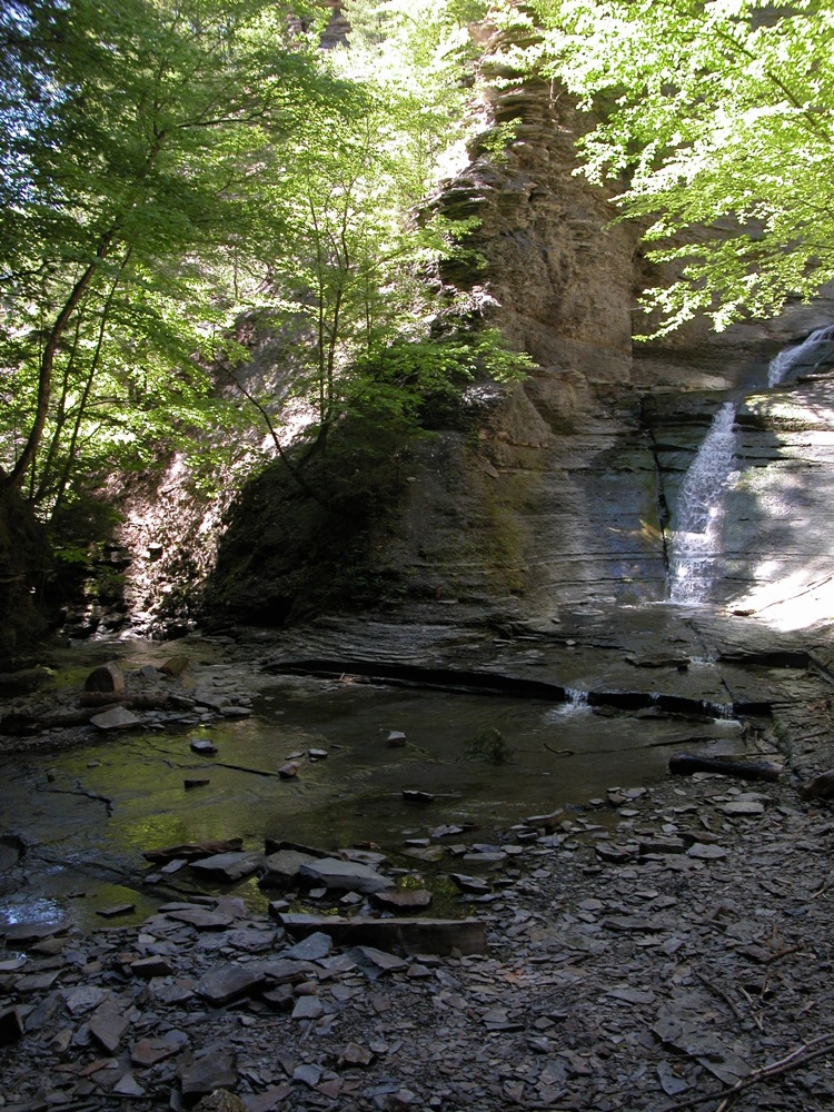 To reach this gully from Naples, head northeast on Route 245 for about 2 miles. There is a parking area on Route 245. At the mouth of the gully, a less obvious trail leads up the hill to the Angel Falls overlook and the rim trails. From the rim trails you can get down into the upper part of the gorge without having to climb the two waterfalls.