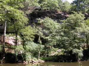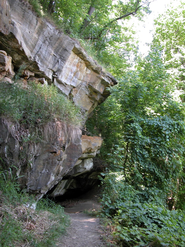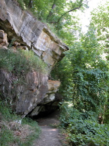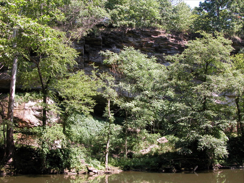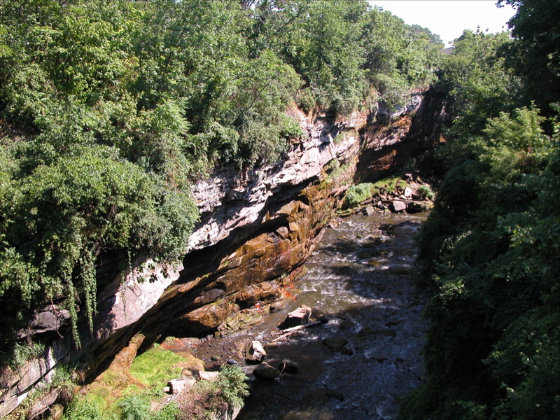 The Glens trail starts at Gorge Metropark and follows the river upstream. Unfortunately it stays near the rim and does not reach the real interesting part of the gorge nor get anywhere near the Little Falls. With some work you can get down to the river level opposite 100' high cliffs, but working your way upstream to the falls would be very difficult and probably very dangerous.