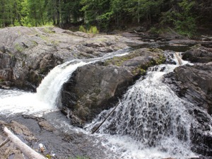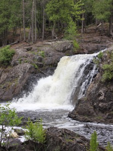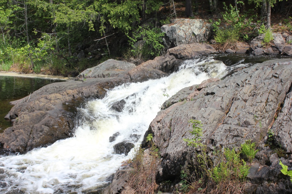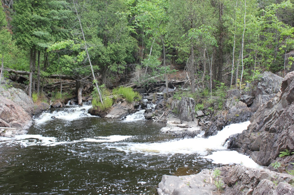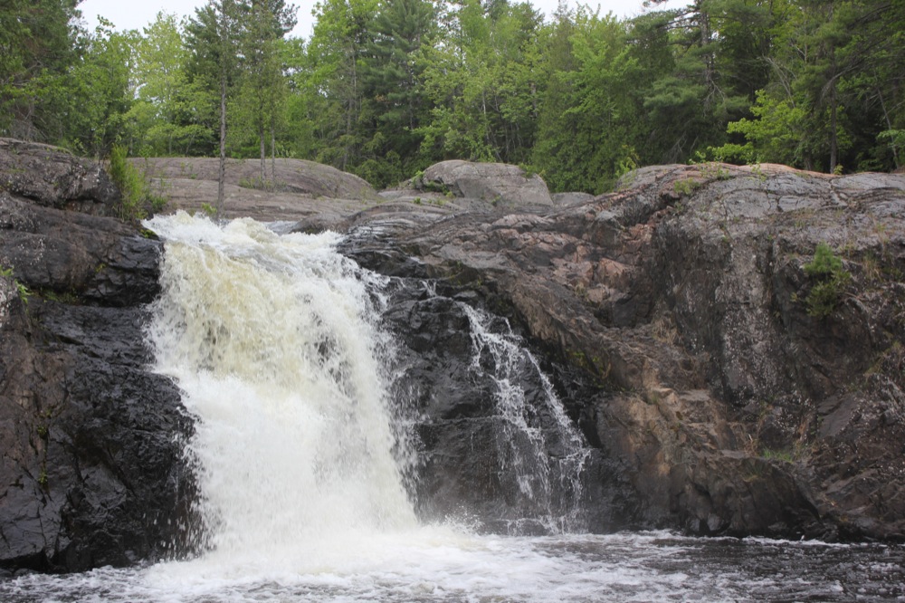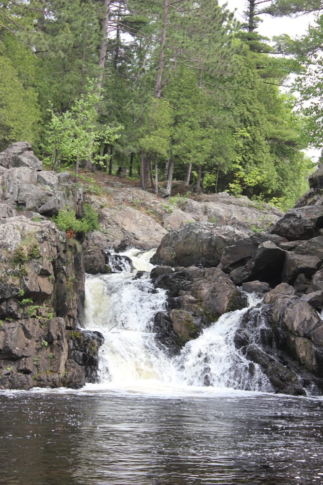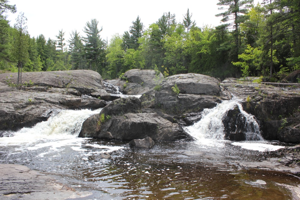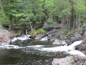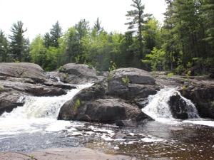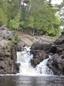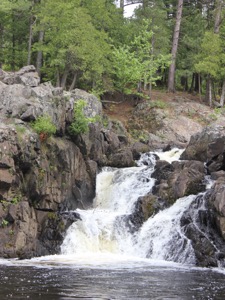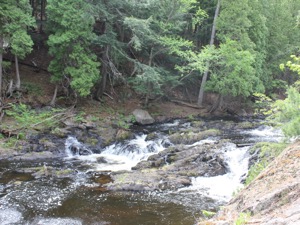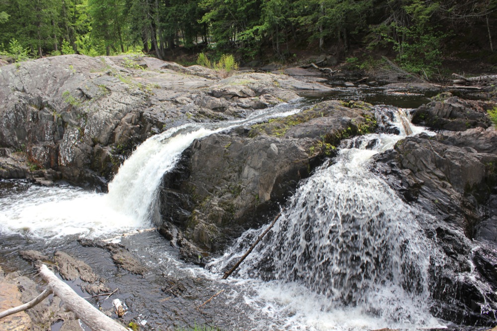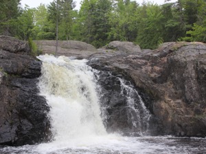 The Dead River Falls are a series of falls and rapids located just west of Marquette Michigan. In a half mile stretch the river drops 90 feet. There are three drops over 15', and a number of smaller drops. The exact number depends on who you ask.