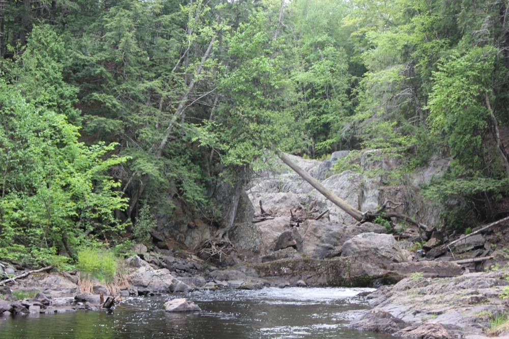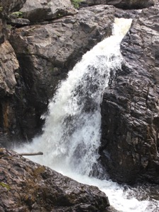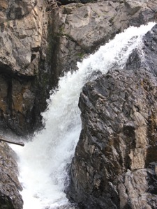 The final drop is a bit farther upstream, past a quiet stretch where the river widens considerably. The final drop is a multi-tiered drop of 15'.