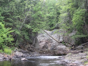 Farther upstream is another 5' drop. The next drop is a 20' falls, which in my opinion is the most scenic. The river drops steeply into a cluttered gorge. Excellent views are easily available from the rock walls above the falls. Getting to the base would be a lot trickier.