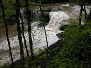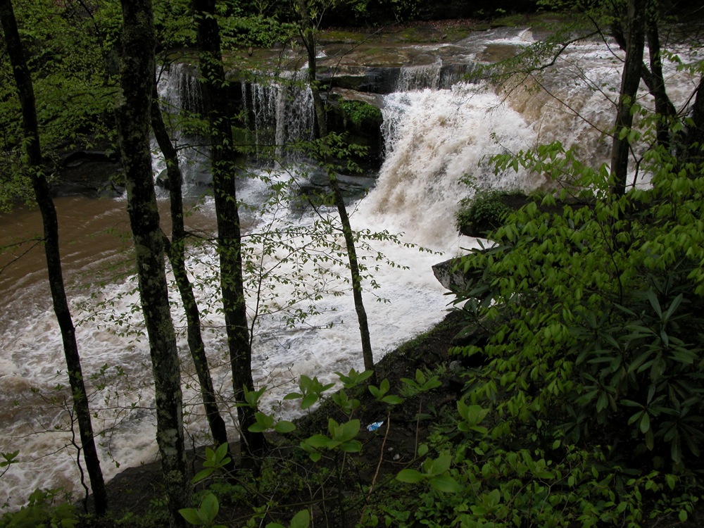 It had been raining for several days when I visited Dunloup Creek Falls. Most of the time the falls will have much less water. This is one waterfall that may look a bit more scenic at lower flows.