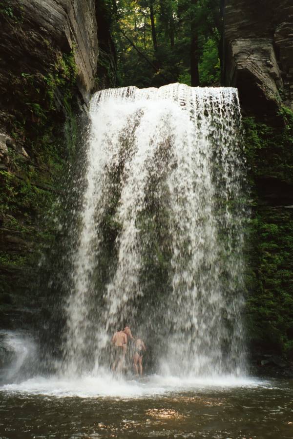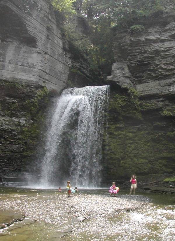 Eagle Cliff Falls is in Havana Glen Park, a privately owned park. The park is half a mile south of the Village of Montour Falls on Havana Glen Road, off of Route 14. It cost $1 to enter. The trail through the glen to the falls is very pretty. Bring a swimsuit, because you can play in the water if you wish. The park also features a large picnic area and a camping area.