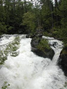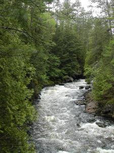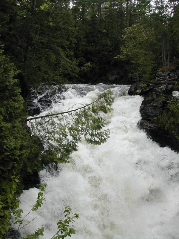 Duchesnay Falls is the closest easily visited waterfall. It lies about about 30km to the west. Paresseux Falls on the Mattawa River is only about 6km away as the crow flies, but it is only reachable by canoe, or an off trail bushwhack.
