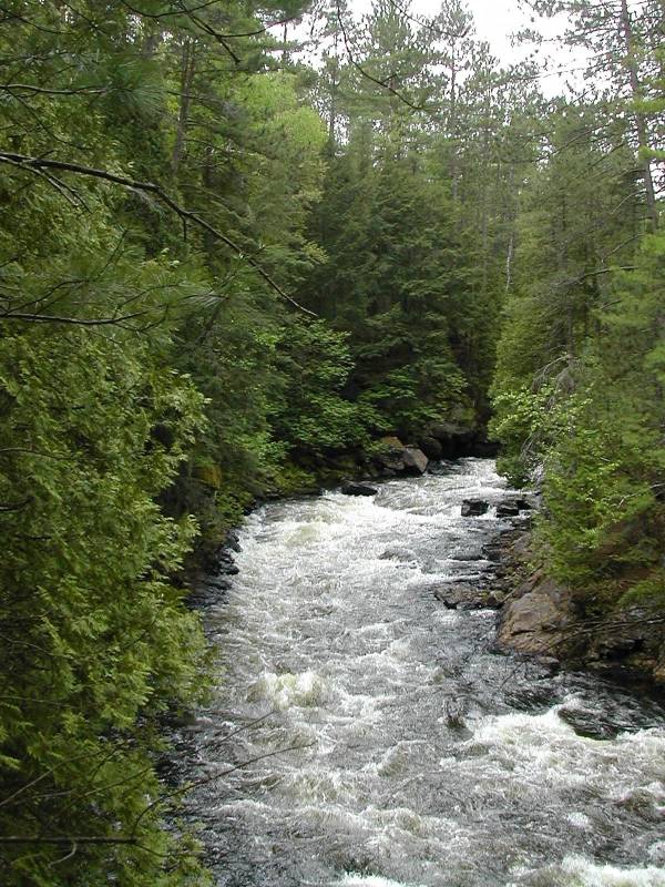 The Eau Claire Gorge Falls is outside the Great Lakes watershed. The Amable du Fond River flows into the Mattawa River, which flows into the Ottawa River. This is the first waterfall I have visited that is directly in the Ottawa River watershed. The Ottawa flows into the Saint Lawrence River, as does Lake Ontario and all the waters of the Great Lakes.