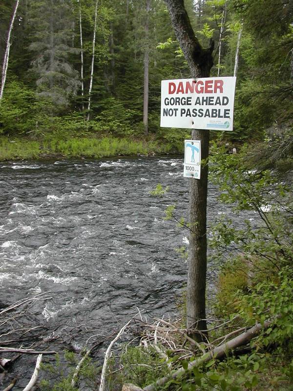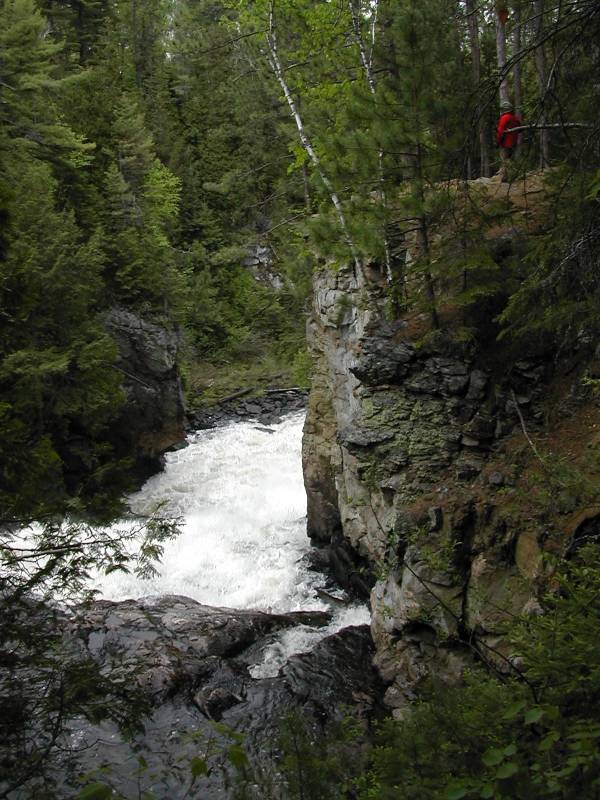 The falls is on a canoe route. Above the falls is a long stretch of rapids. Missing the portage would be deadly.